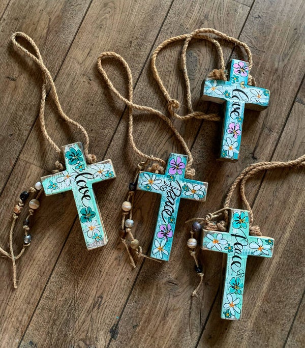20×15CM X3CM DIK GEBRUIKT STEIGERHOUTEN KRUIS aan dik jute touw, handgemaakt door jootje